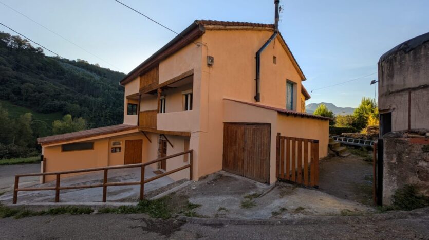 Casa de tres plantas repartidas en unos 98m cada una con entradas independientes, primera planta reformada, fachada recién pintada, balcones de la fachada principal reformados y cambiado vigas, 2º planta y ático para reformar, calefacción mediante chimenea de leña que funciona también con radiadores y conectado a un termo eléctrico, ventanas de PVC, zona de lavandería, garaje independiente, tiene terreno de 1200m al lado de la casa, otro de 137m urbanizables justo enfrente y otro de 5200m al lado del rio carranza junto a CA-150.